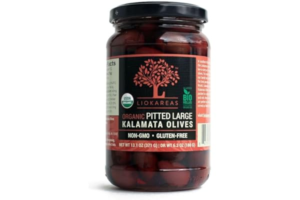 NON-GMO - Gluten Free - Large - Pitted - USDA Certified Organic (13.1 oz) - Product of Kalamata, Greece - Brine with Sea Salt, Water, Organic EVOO and Organic Vinegar