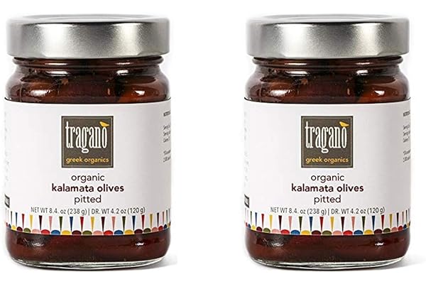 Tragano Greek Organics Pitted Kalamata Greek Olives (8 Ounce, 2 Pack)