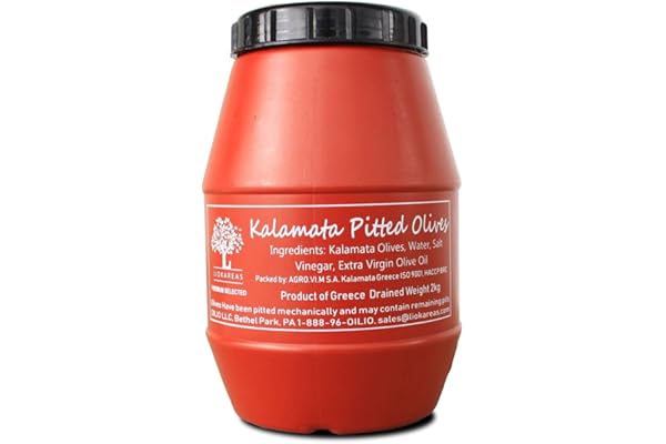 4.4lbs - Organic - NonGMO - Gluten Free - Keto - Paleo - Brine W/ Sea Salt, Water, Red Wine Vinegar, and EVOO, NO Lactic Acid - From Kalamata, Greece