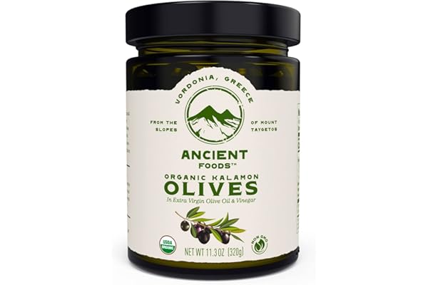 Organic Black Olives in Extra Virgin Olive Oil and Vinegar, With Greek Mountain Kalamon Olives (11.3oz)