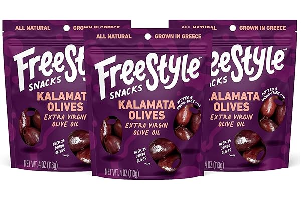 Fresh Pitted Kalamata Olives, Marinated in Extra Virgin Olive Oil, Salty Snack, Grown in Greece, All Natural, Non-GMO, Paleo, Keto Snacks - Kalamata, 4oz (3 Pack)