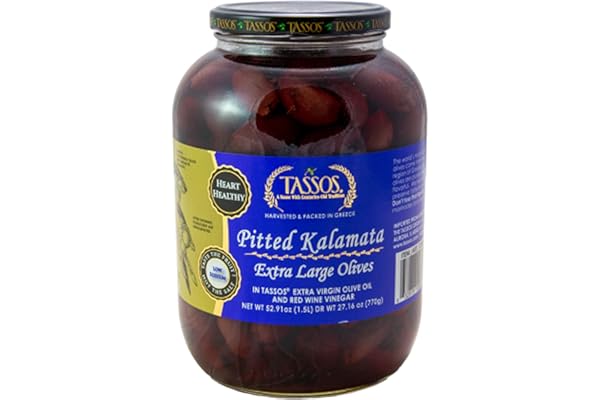 Tassos Pitted Kalamata Extra Large Olives from Greece 1.5L Jar.