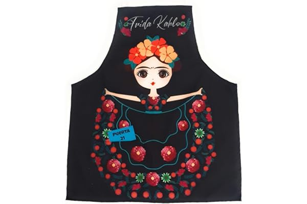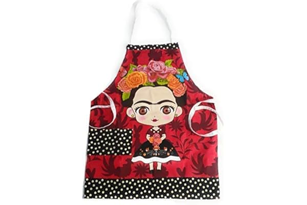 Frida Kahlo Apron Mexican Artist Cotton with Helpful Pockets/delantal mandil mexicanos para mujer de Cocina Mexican Apron gifts delantales de cocina para mujer/mandiles (Red and Black)