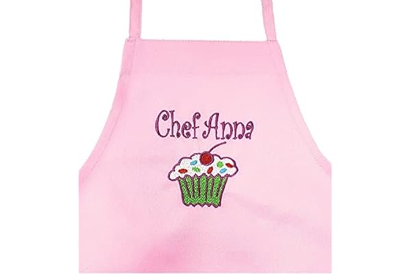 Apron Personalized for Girls Embroidered Chef Cooking Baking Kids Toddler Tween Teen (01 pink)