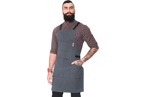 Heavy Duty Waxed Canvas, Cross-Back, Leather Reinforcement - Adjustable for Men and Women, Pro Mechanic, Welding, Woodwork, Blacksmith, Server Aprons