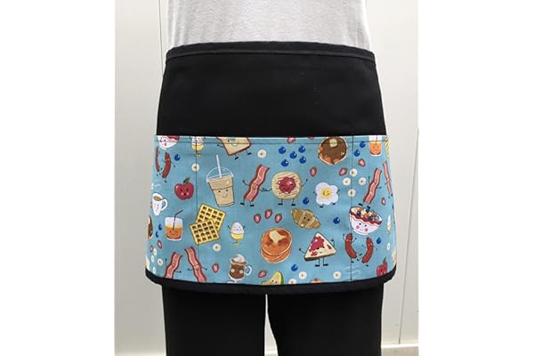 breakfast, eggs, pancakes, Waffles, Bacon, food Design apron 3 pocket black half waist apron restaurants check out 300 More prints @ (Handmade Janets Aprons)