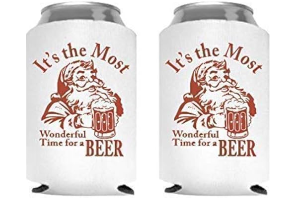 Funny Christmas Santa Beer Can Cooler Stocking Stuffer Party Favor Gift for Men Adult- Set of 2 (Its the Most Wonderful Time for a Beer)