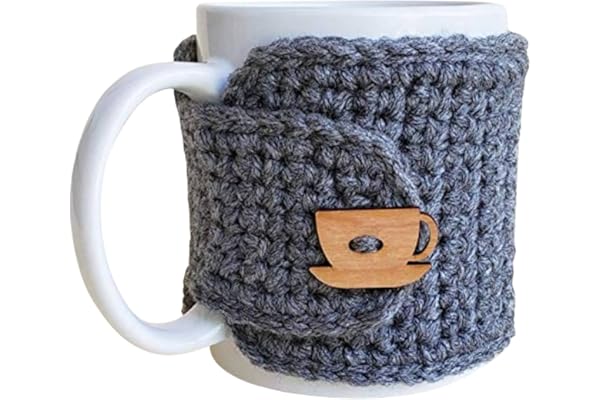 Mug Cozy with Wooden Cup and Saucer Button (Heather Grey)