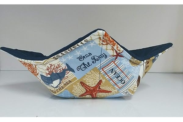 Beach quilted cotton reversible microwavable soup bowl holder or cozy