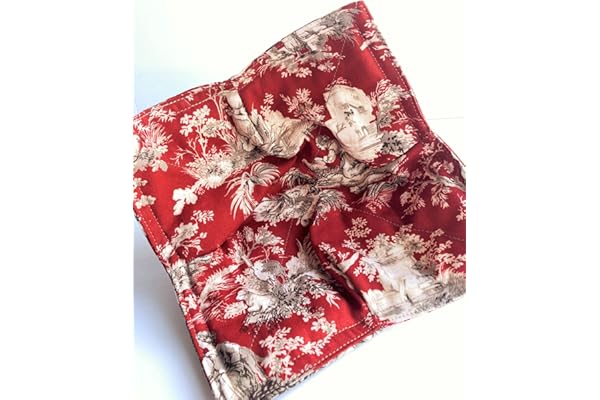 Charming Toile Cotton Print - aka Microwave Hot Pads aka Bowl Oven Mitts - 8.5 inches for up to 8 inch bowls - Red with Beige and Taupe