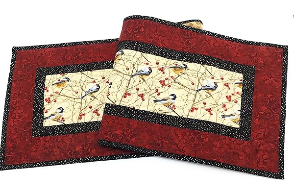 Mountain Chickadees Burgundy Table Runner for Dining Table, 13 x 48 inch, Reversible Quilted, Coffee Table Runner for Living Room, Rustic Decor Everyday