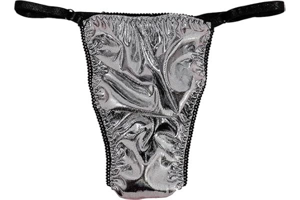 Ania's Poison Sissy Thong Panties Silver Foil Shiny Sparkle Triangle T-thong Adjustable Men's Thong Panties