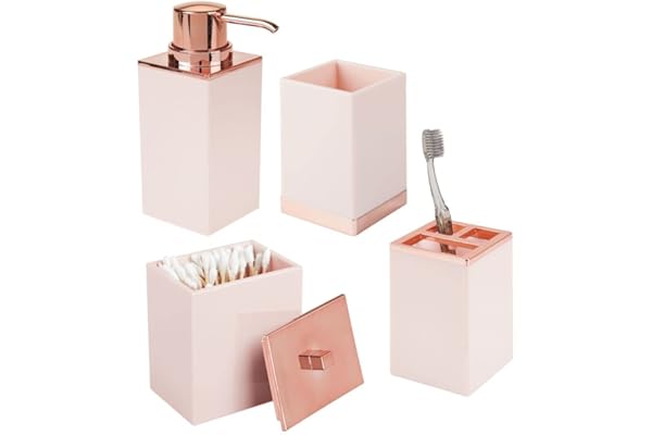 mDesign Plastic Bathroom Storage Jars, Vanity Decor Accessory, Countertop Organizers; Soap Dispenser, Toothbrush Holder, Toothpaste Caddy, Cup; Lumiere Collection
