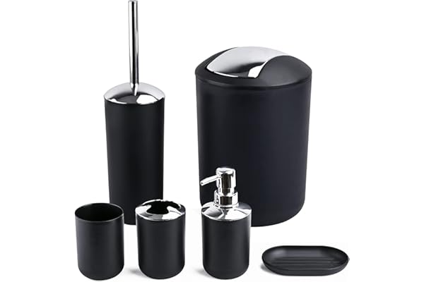 Toothbrush Cup,Soap Dispenser,Soap Dish,Toilet Brush Holder,Trash Can,Tumbler Straw Set Bathroom (Black)