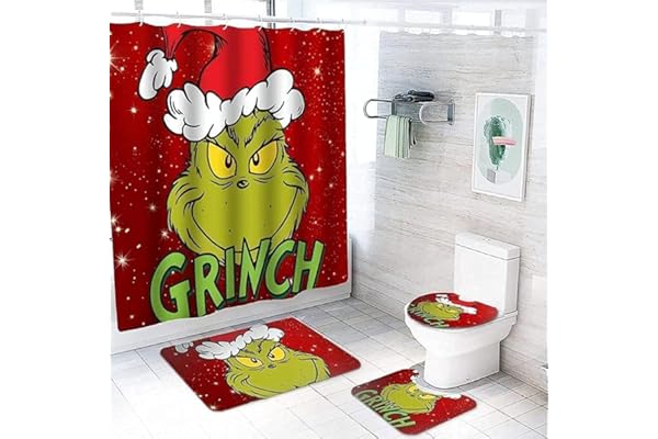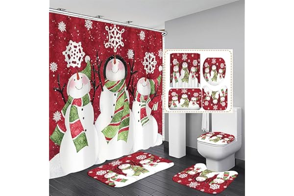 ZMMB Christmas Shower Curtain 4 Piece Sets with Non-Slip Rugs