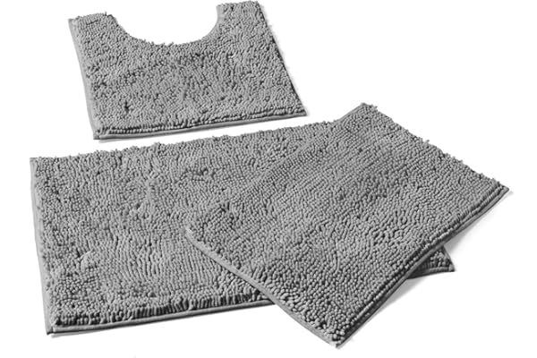 Includes U-Shaped Contour Toilet Mat, 20 x 30'' and 16 x 24'' Bath Mat, Non-Slip Shaggy Gray Bathroom Rugs and Mats Sets, Machine Washable, Light Grey