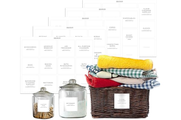 Storage, and Laundry Room Preprinted Organization Labels for Storage Bins Containers and Jars