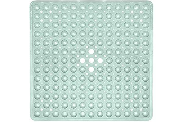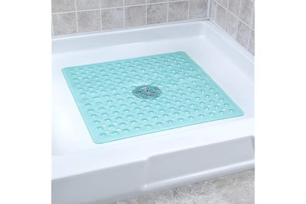 ENKOSI Square Shower Mat 21 x 21 inch for Shower Stall Floors Bathtub Mat Non Slip Firm Grip Bathroom Mat with Over 160 Strong Suction Cups (Aqua Green)