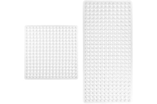 Shower Stall Mat Size 21x21, Machine Washable, Bathtub Mat Size 35x16, Both in Clear, 2 Item Bundle