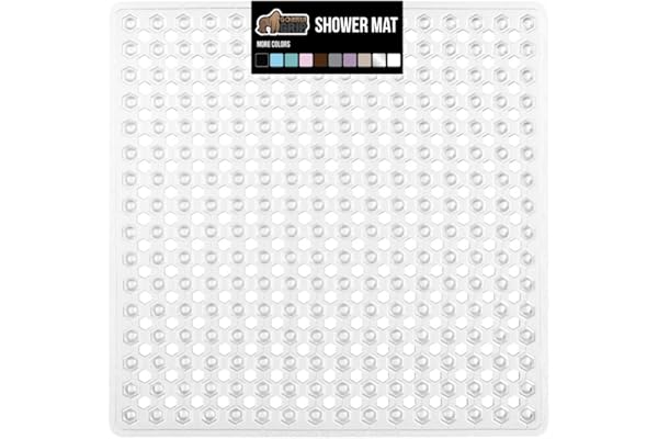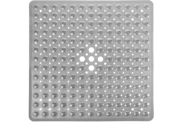 Non Slip Bathtub Mats with Suction Cups, Drain Holes, Machine Washable, 21 x 21 Inches, Clear Gray