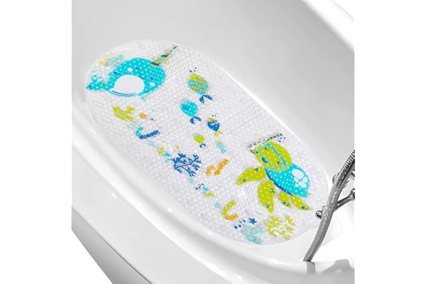 27.5"x 15" Non-Slip Cartoon Shower Mats Kid Mats with Suction Cups, Baby Bathtub Mats Bathroom Mats Machine Washable Soft