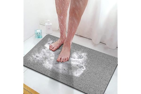 24x16 inch, Non-Slip Bath Mat with Drain, Quick Drying PVC Loofah Bathmat for Tub,Shower,Bathroom (Phthalate Free,Grey)