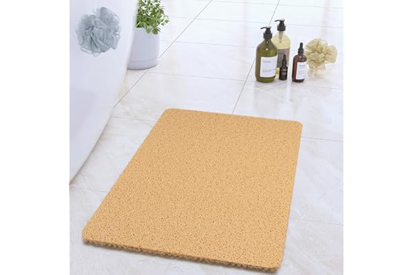 Soft PVC Loofah Bathroom Mats for Wet Areas, Quick Drying 24"x16" (Champagne)