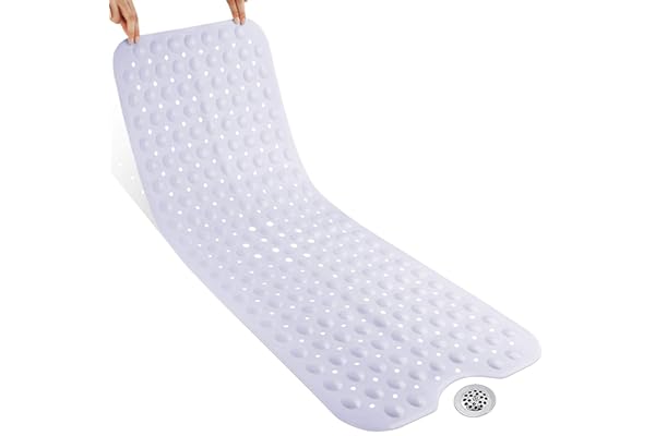 Extra Long Bath Mat for Tub with Big Suction Cups and Drain Holes, Machine Washable Tub Shower Mats for Bathroom 16 x 40 Inches, Phthalate Latex Free, White