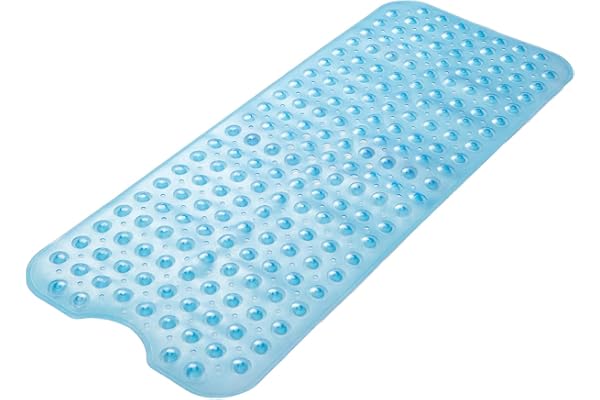 Bath Mats for Tub, Shower Mat with Drain Holes Suction Cups, Machine Washable, BPA, Latex,Phthalate Free, 34.5 x 15.5 Inches, Clean Blue