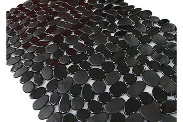 SONGZIMING Non-Slip Pebble Bathtub Mat Black 16 W x 35 L Inches (for Smooth/Non-Textured Tubs Only) Safe Shower Mat with Drain Holes