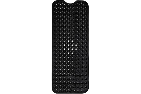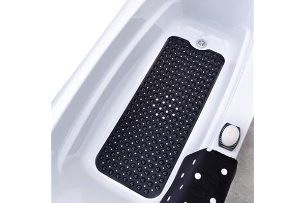 Wet Floor Non-Slip for Elderly & Kids Bathroom, 30% Longer Bathtub Mats, 200 Suction Cups, Drain Holes, Machine Wash, Black