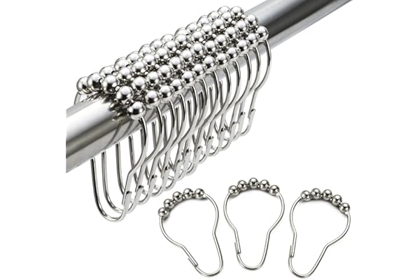 Titanker Shower Curtain Hooks Rings, Rust-Resistant Metal Double Glide Shower Hooks for Bathroom Shower Rods Curtains, Set of 12 Hooks