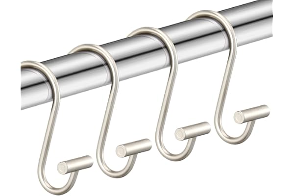 Metal Shower Curtain Hooks,Set of 12 Rings,Rust Resistant S Shaped Hooks Hangers for Shower Curtains, Kitchen Utensils, Clothing, Towels, etc