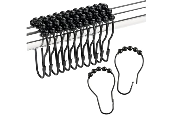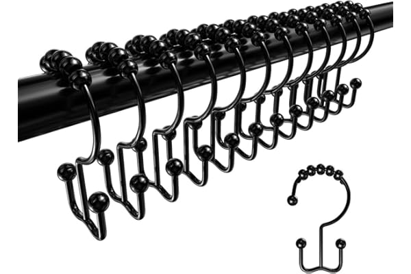 12 Pcs Shower Curtain Rings, Stainless Steel Roller Rust-Resistant Balance Sliding Anti-Drop Double Shower Hooks for Curtain Bathroom Shower Curtains (Black)