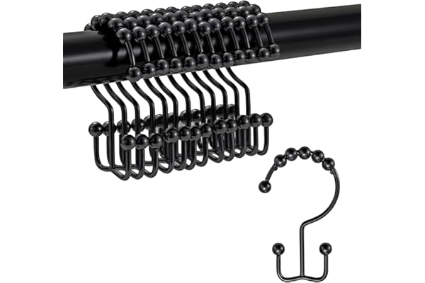 Goowin Shower Curtain Rings, Stainless Steel Shower Curtain Hooks Rust Proof Free Sliding Double Shower Hooks for Curtain, Shower Curtains & Liners (Black)