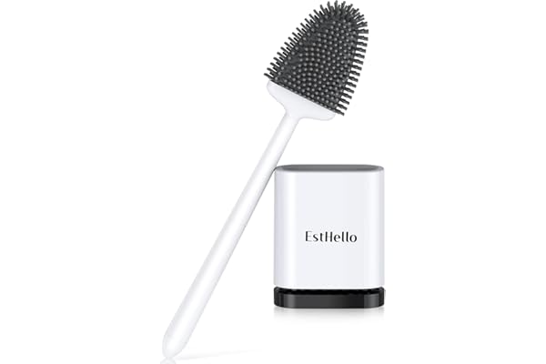 Deep Cleaner Silicone Toilet Brushes with No-Slip Long Plastic Handle and Flexible Bristles, Silicone Toilet Brush with Quick Drying Holder Set for Bathroom Toilet(Silver)