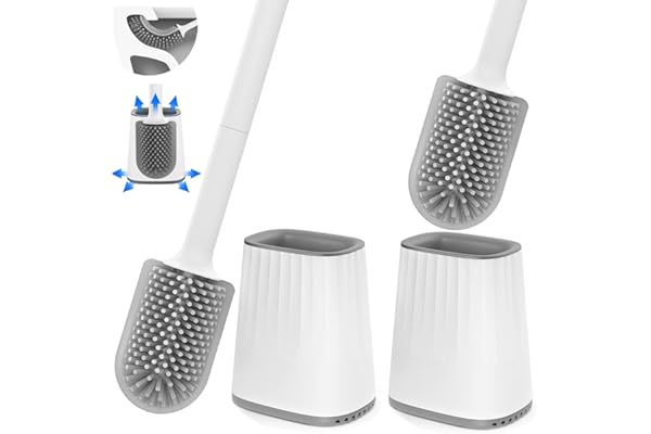 2 Pack Toilet Bowl Brush and Holder with Ventilated Holder, Bathroom Accessories Toilet Bowl Cleaners with Silicone Bristles, Cleaning Supplies Toilet Cleaner Brush for Deep Cleaning