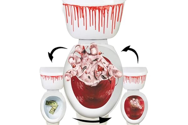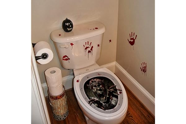 Halloween Toilet Seat Cover 3D Horror Morphing Decal for Halloween Theme Party Home Decor (Zombie Hand&Dollar&Blood)