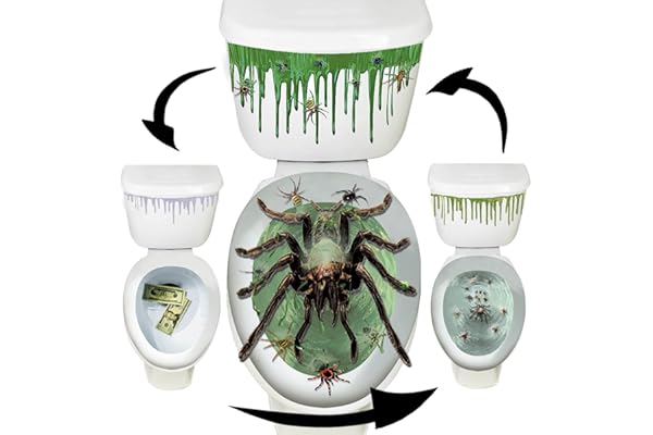 Halloween Toilet Seat Cover 3D Horror Morphing Decal for Halloween Bathroom Décor Halloween Theme Party Home Decor (Spider&Green Blood)