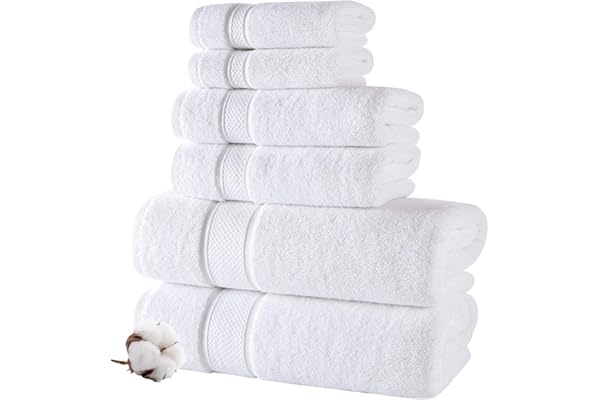 Hotel Quality Turkish Towel Set for Bathroom (6 Pcs Towel Set, Pure White)