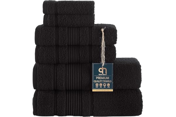 100% Turkish Cotton Premium Quality Bathroom Towels, Soft and Absorbent Turkish Towels, Set Includes 2 Bath Towels, 2 Hand Towels and 2 Washcloths (Black)