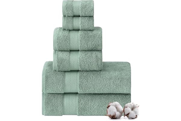 100% Cotton, Highly Absorbent, Bathroom Towels, Super Soft, 6 Piece Towel Set , Towel Sets for College Dorm , Teal / Aqua Green