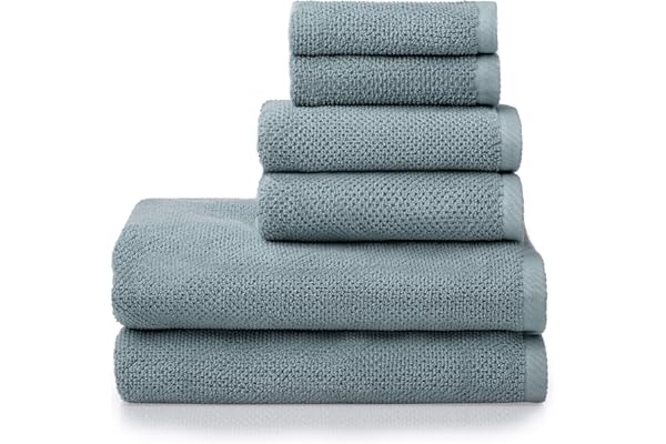 Amazon Basics 6-Piece Fade Resistant Bath, Hand and Washcloth Towel Set