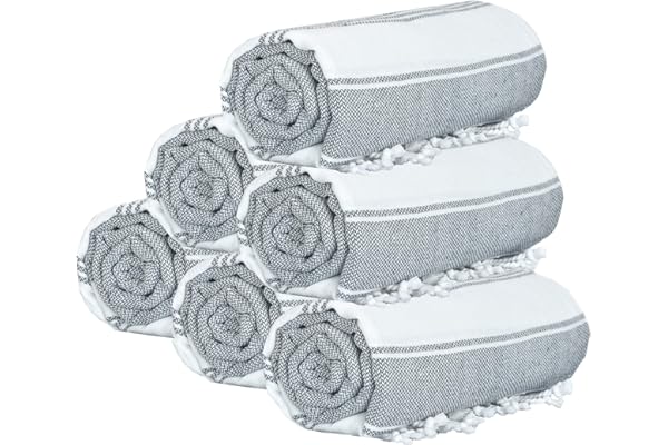 Glamburg Peshtemal Turkish Towel 100% Cotton Beach Towels Oversized 36x71 Set of 6, Cotton Beach Towels for Adults, Soft Durable Absorbent Extra Large Bath Sheet Hammam Towel