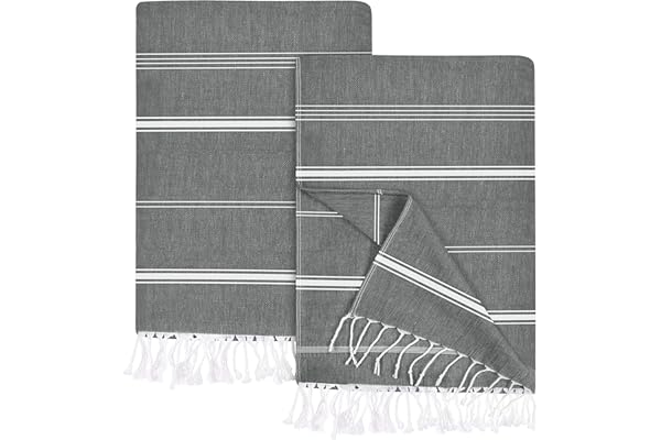 100% Cotton Oversized Sand Free Lightweight Quick-Dry Turkish Towel, Prewashed for Soft Feel, Large Peshtemal Towel for Travel (Grey)