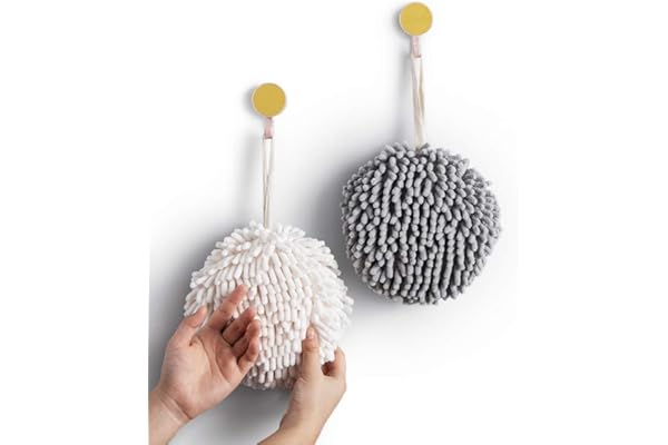 Sophie & Panda Fuzzy Ball Towel (Set of 2) White and Gray
