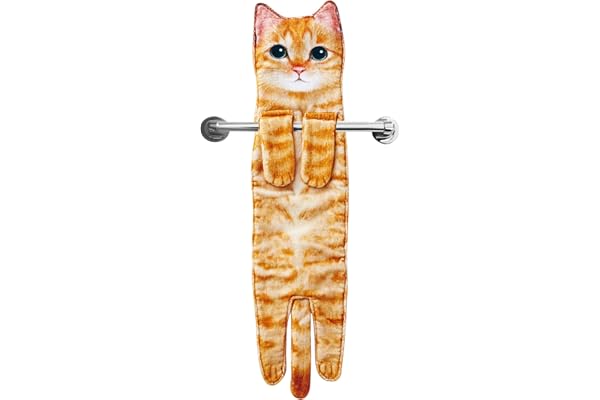 Cute Decorative Cat Decor Hanging Washcloths Face Towels Super Absorbent Soft- Housewarming Gift for Cat Lovers - Orange
