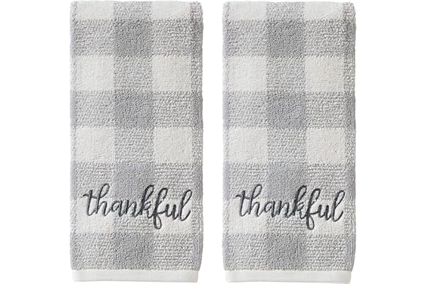 Thankful Plaid Hand Towel (2-Pack), Gray