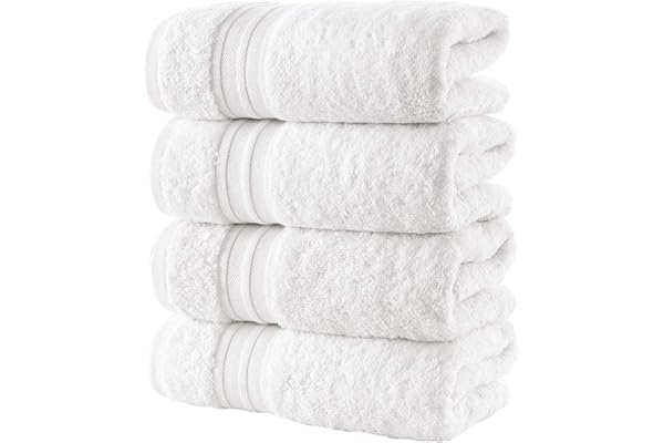 100% Ring Spun Cotton (24 x 48 Inches) Medium Lightweight and Highly Absorbent Quick Drying Towels, Premium Towels for Hotel, Spa and Bathroom (White)