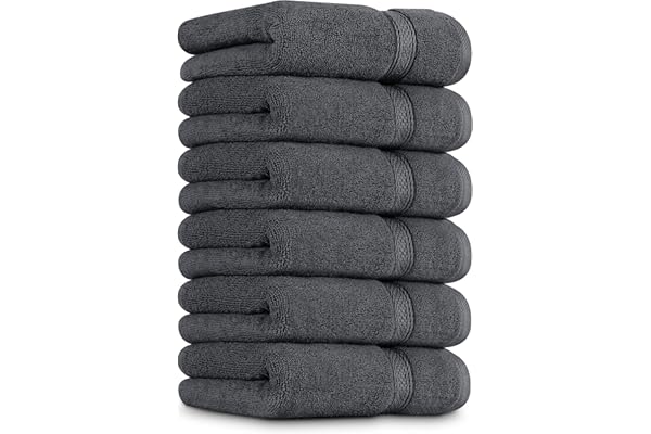 2 Bath Towels, 2 Hand Towels, and 4 Wash Cloths, 600 GSM 100% Ring Spun Cotton Highly Absorbent Towels for Bathroom, Gym, Hotel, and Spa (Grey)